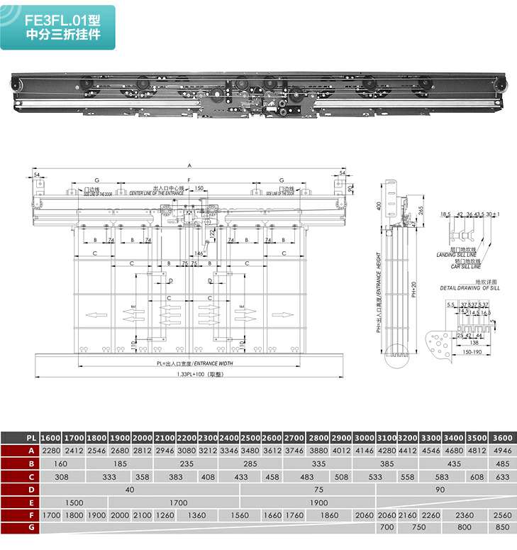 FE3FL.01型中分三折层门装置